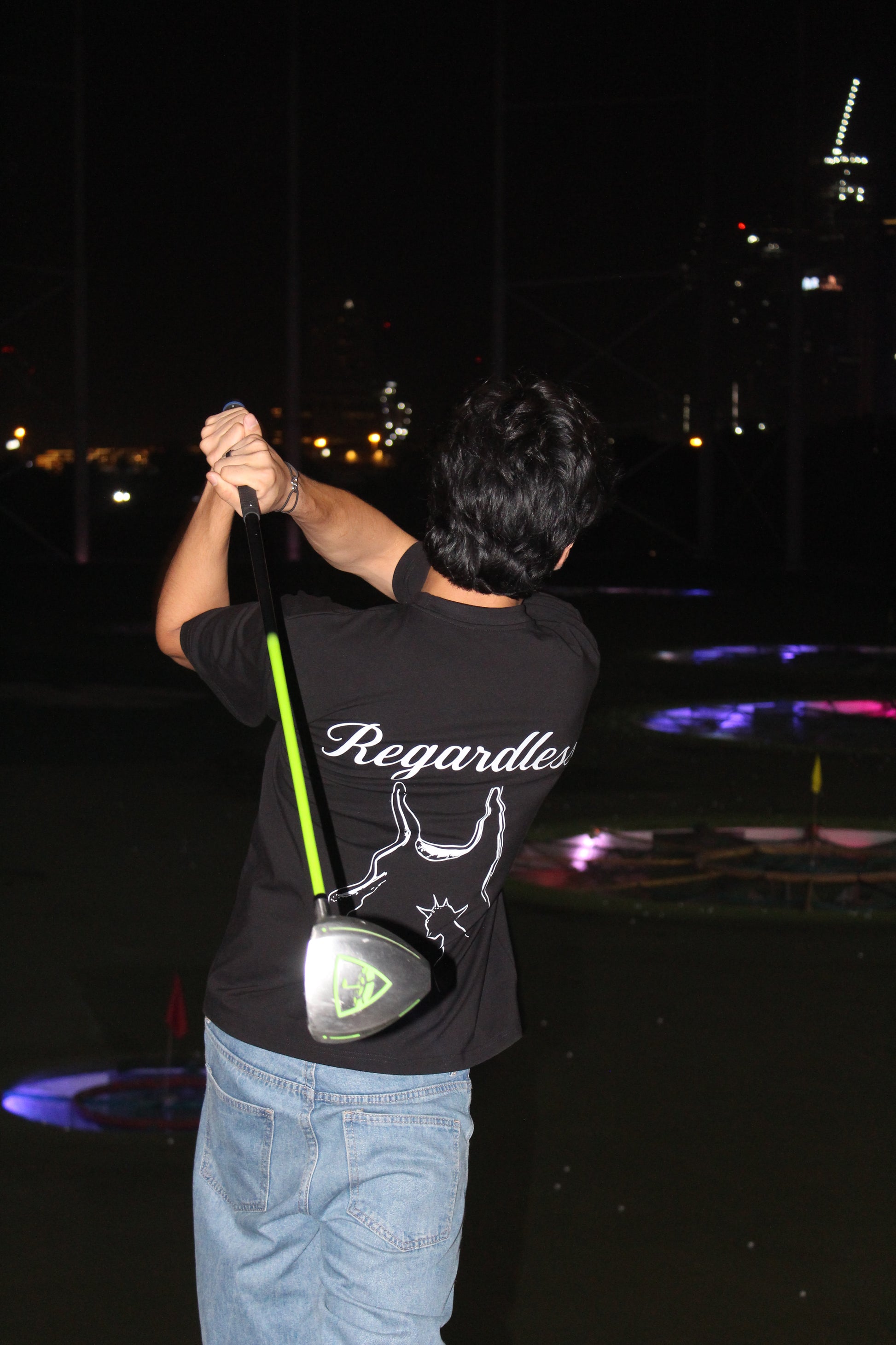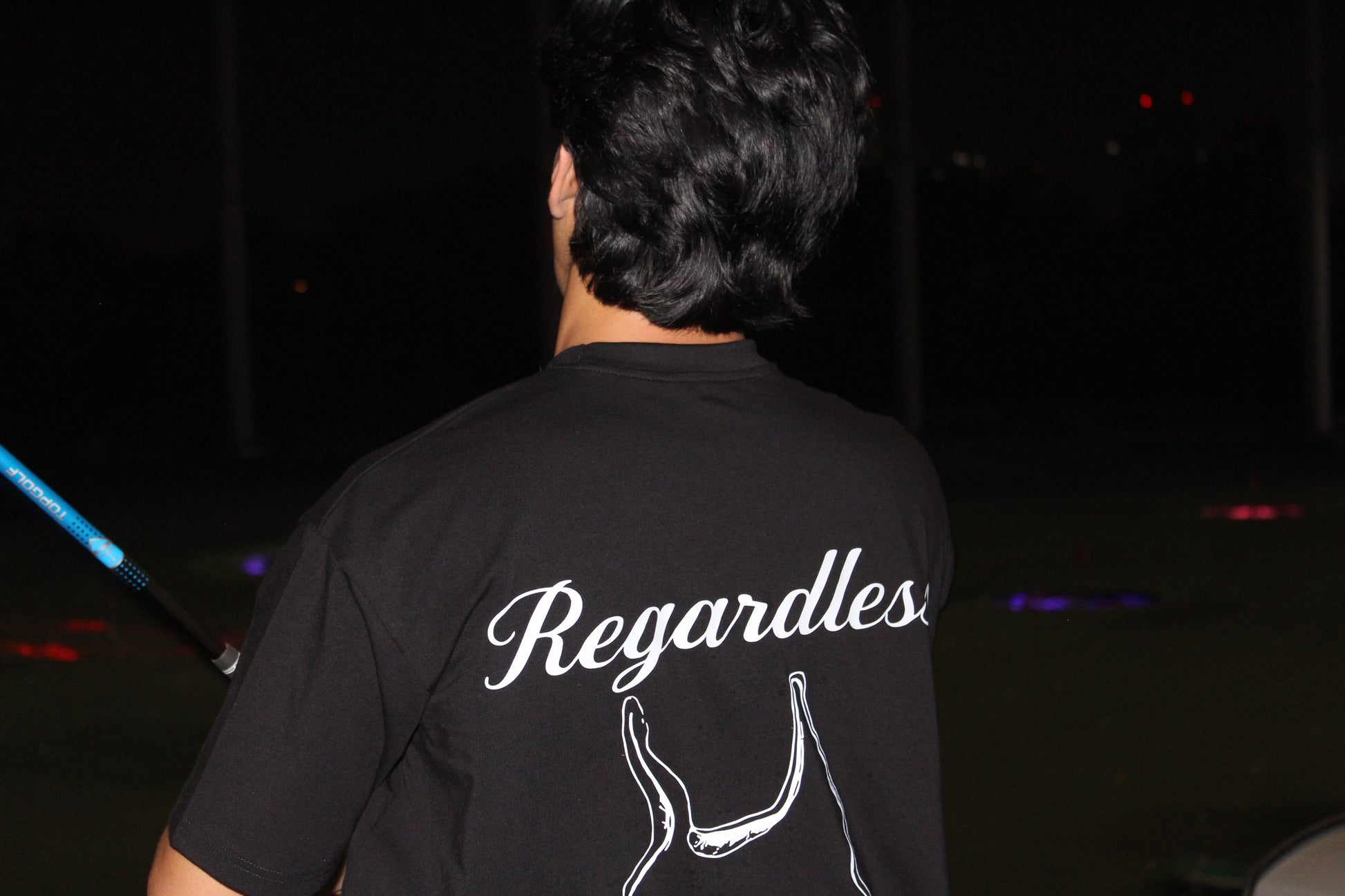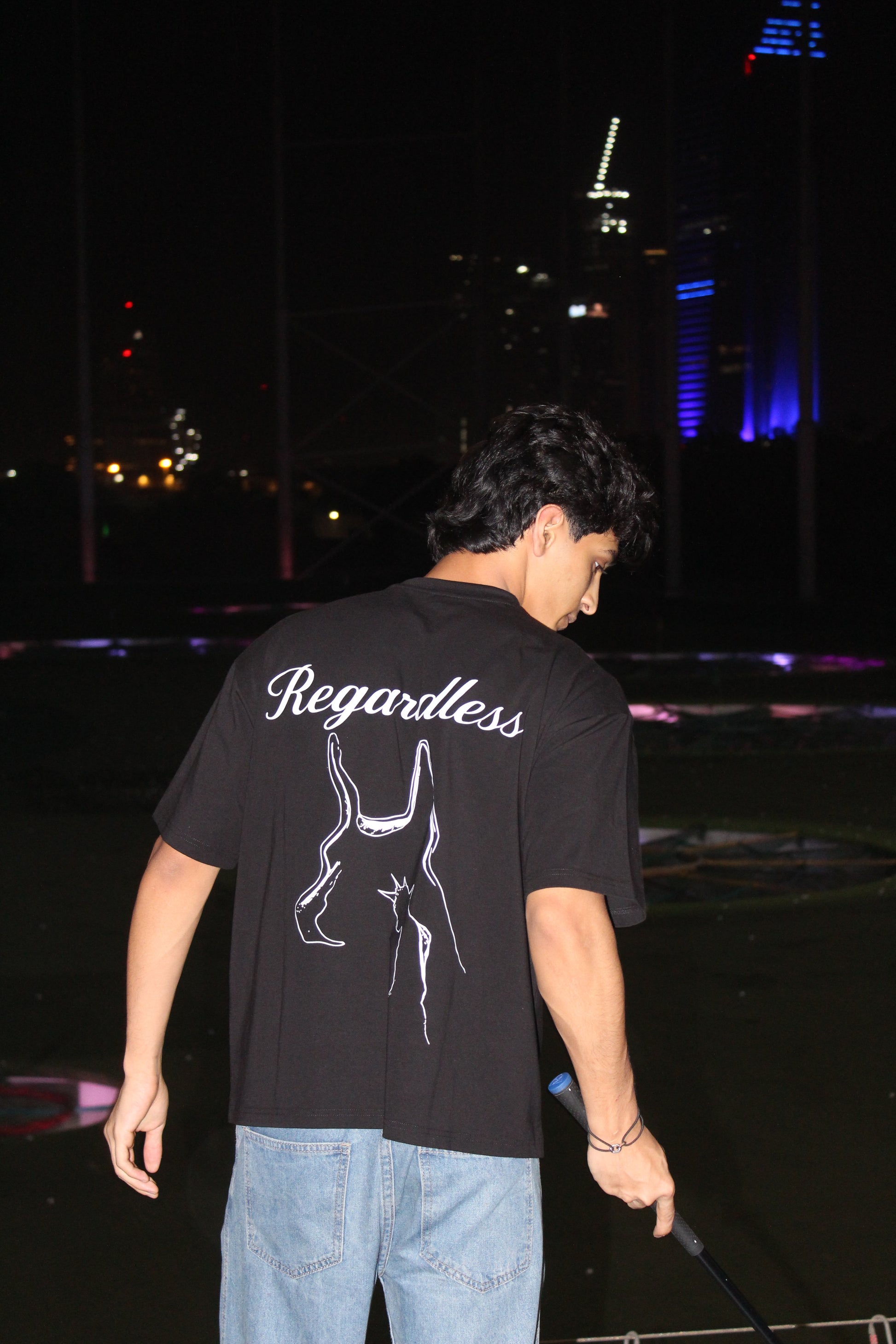 “Regardless” outline print on the back. Designed with a clean neckline and double-stitched hems for durability.